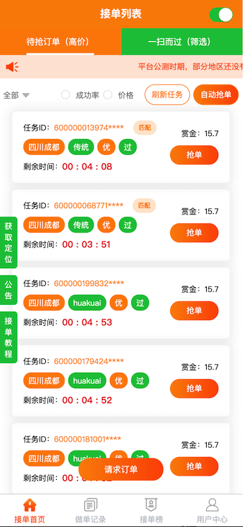 類似“碼幫平臺/FZ輔助/碼力平臺/閃電接單/蜻蜓輔助/雛菊輔助”,第三方微信輔助注冊任務管理平臺——“蜜蜂”任務平臺管理系統,幫助有大量微信注冊需求的商家和想要0元投入月入過萬的兼職人員搭建連通的橋梁。系統由用戶端H5/APP、商家端H5/APP、地推商戶端H5、商家端PC、平臺端PC架構而成,支持用戶隨時提現,支付寶實時到賬,商家端一鍵掃碼下單,方便快捷;系統支撐商家每天10萬+的訂單下發和用戶隨時隨地搶單,做單,賺取傭金,提現等更多功能。。。